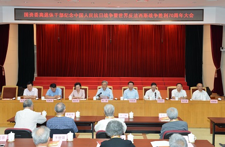 9月7日,国资委离退休干部纪念抗日战争暨世界反法西斯战争胜利70周年大会在西便门办公区多功能厅召开。国资委主任、党委书记张毅出席会议并讲话。委领导张喜武、黄丹华、徐福顺、孟建民、强卫东、王文斌、阎晓峰出席大会。徐福顺主持大会。